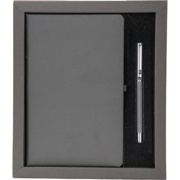 * 13 x 21 cm Cilt Bezi Defter (MAT) * Roller Metal Kalem (0555-590) * Kutu: Karton