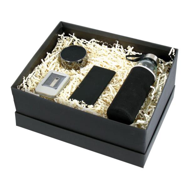 * Cam Matara 500 mL (CB-05) * Powerbank 5.000 mAh (PWB-905) / Işıklı Markalama * Titanyum Speaker (SPK-80) * Metal USB Bellek 16 GB (8115) * Kutu: Taslama