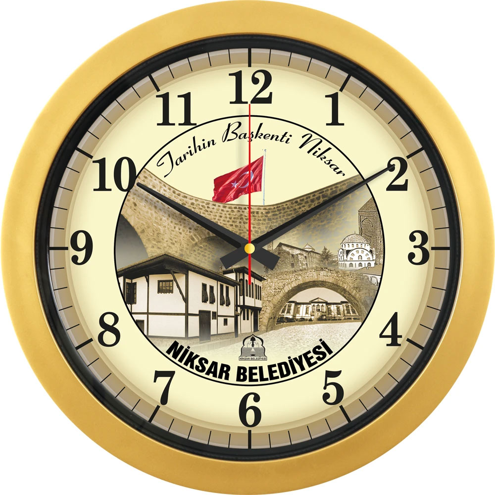 * Ebat: 40 cm * Çerçeve: Plastik * Kadran: Bristol * Saniye: Akar * Cam: Mineral * Baskı: Ofset, Dijital * Koli Adeti: 10 * Not: Altın Varak kadranlar diğer renklerede uygulanabilir.
